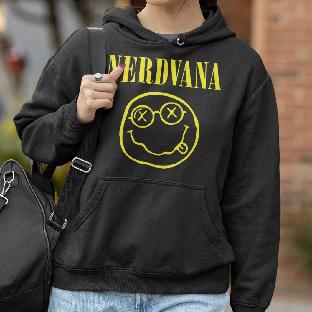 Show off your unique style and love for both music and nerd culture with this standout piece. Get ready to rock your Nerdvana Hoodie and make a statement wherever you go!